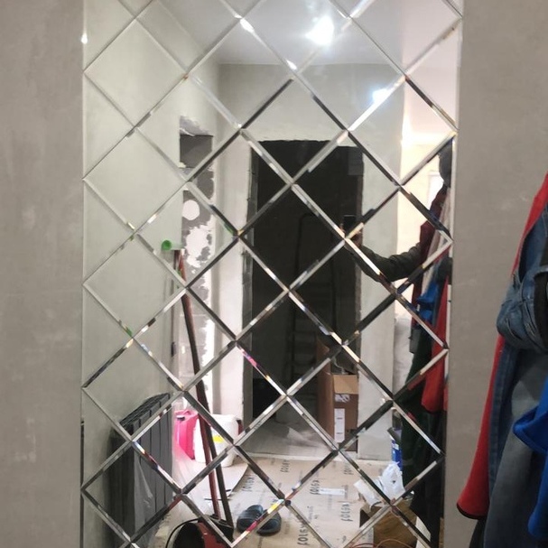 Использована зеркальная квадратная плитка с фацетом.