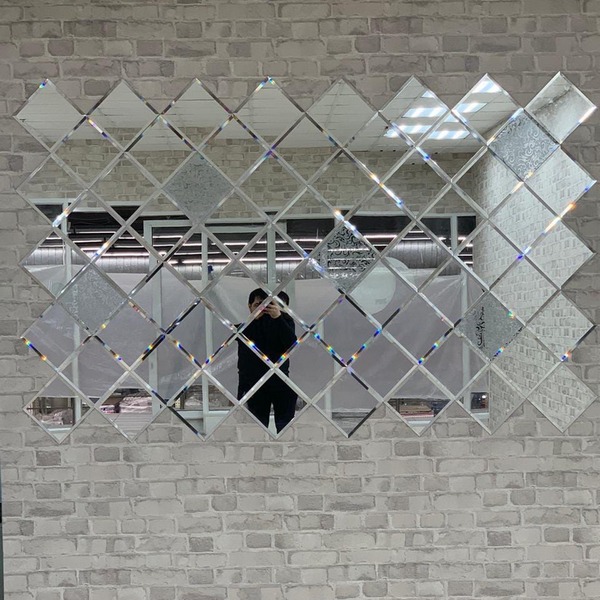 Использована зеркальная квадратная и треугольная плитка с фацетом.